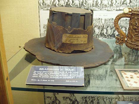 Although the commissioners of the High Court were anxious that the trial should be seen to be open and public, stringent security measures were enforced. Soldiers were stationed to control the crowds, guards were posted on the roofs, cellars were searched. President Bradshaw wore a steel-lined bullet-proof hat in case of an assassination attempt.