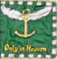 The regiment carried green cornets. Sir Arthur's cornet is illustrated above. According to Blount: Sir Arthur Haslerig depainted an Anchor fixed in the Clouds, and the motto in English, ONLY IN HEAVEN2).